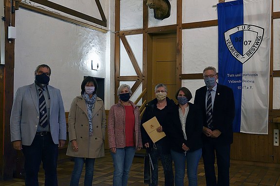 So erhielten Petra Dierkes, Susanne Nübold Sabine Hillebrand und Ulrike Proksch die Silberne Verdienstnadel des Westfälischen Turnerbunden, Peter Eikeler und Georg Palka erhielten die Auszeichnung der Taekwondo Union und Alexander Böer und Brunhuilde Icking Brösel nahmen aus der Hand des FLVW Kreisvorsitzenden ihre Auszeichnung entgegen.